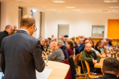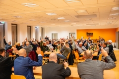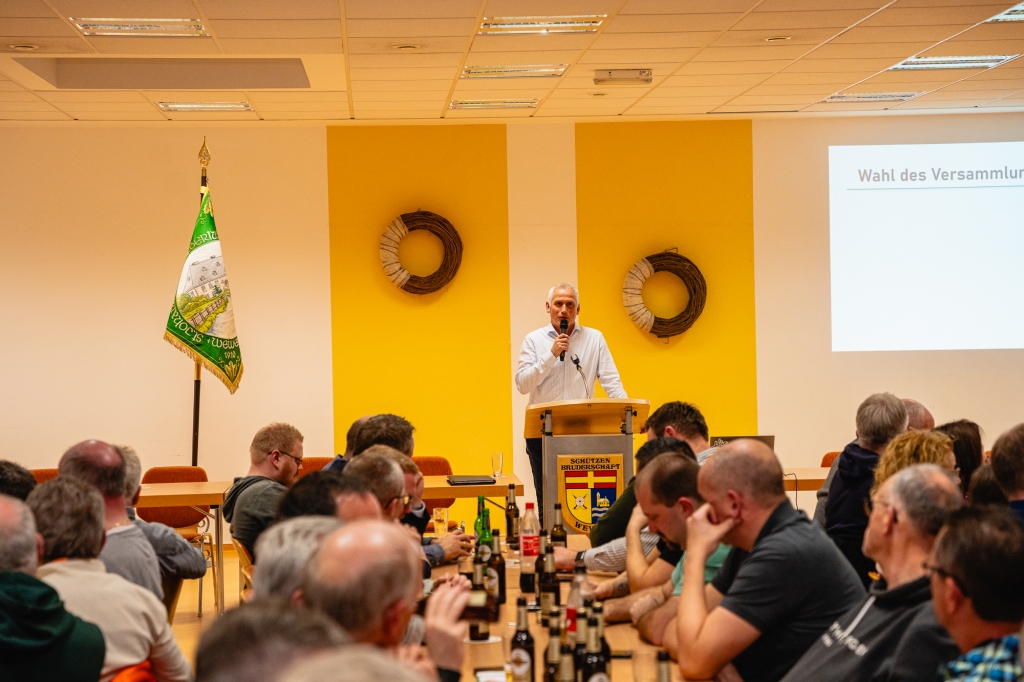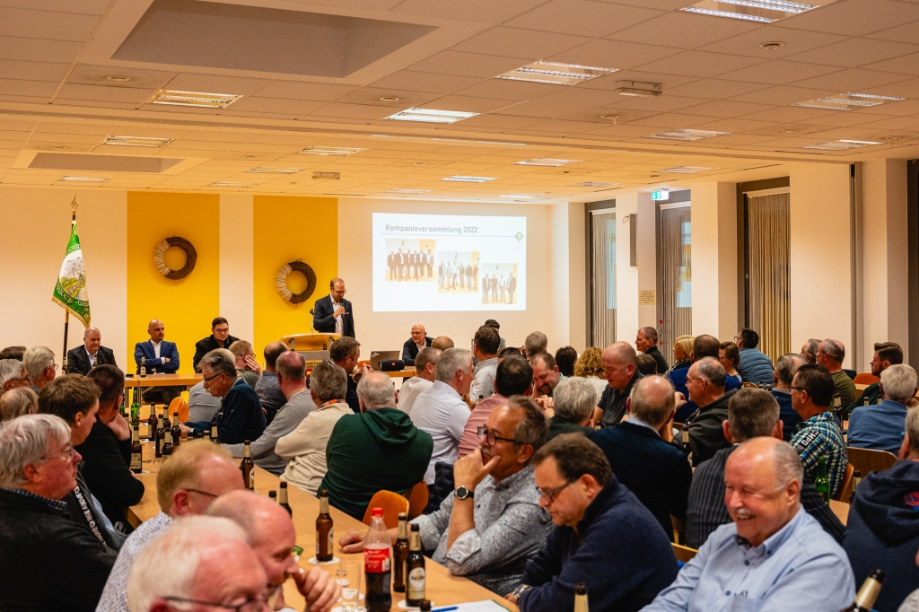 Der Vorstand der Schloß-Kompanie hatte am 15. November zur alle 3 Jahre stattfindenden Kompanieversammlung mit Wahlen eingeladen. Hauptmann Christian Schäfer konnte 80 Schützenbrüder und Schützenschwestern im Bürgerhaus willkommen heißen. Unter ihnen für das Bataillon Oberstleutnant Michael Schadomsky und für die Warthe Kompanie den Hauptmann Michael Neumann.